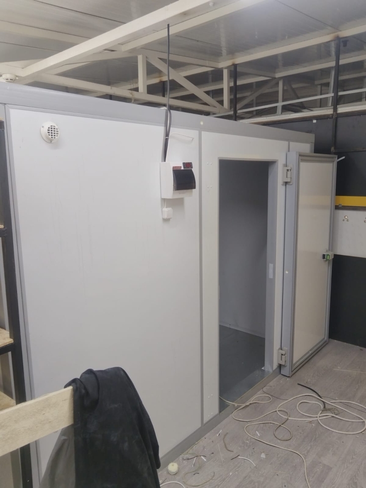 Надёжная и герметичная холодильная камера, полностью готовая к эксплуатации. Конструкция обеспечивает стабильный температурный режим, удобство использования и долгий срок службы, соответствуя требованиям бизнеса и стандартам хранения продукции.